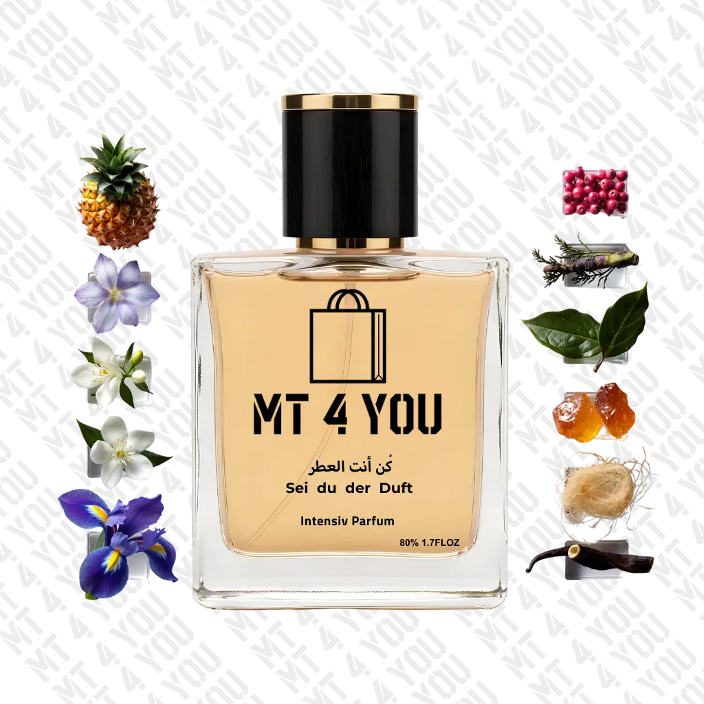 Die Komposition eröffnet mit tropischer Ananas und frischer Hyazinthe – ein spritziger, einladender Auftakt. Im Herzen entfaltet sich eine raffinierte Kombination aus Jasmin, Iris und rosa Pfeffer, die dem Duft eine blumige, leicht würzige Eleganz verleiht. Die Basis aus Vetiver, Patschuli, Amber, Moschus und Vanille rundet den Duft mit einer warmen, tiefen und sinnlichen Note ab – ideal für alle, die einen vielschichtigen und ausgewogenen Duft suchen.