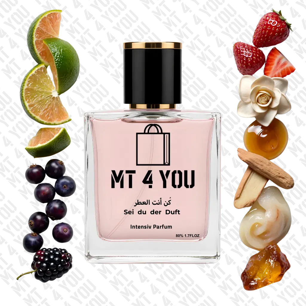 Dieser Duft öffnet mit saftig-frischer grüner Mandarine und dunkler Johannisbeere – ein frischer, fruchtig-einladender Start. Im Herzen entfaltet sich ein verspieltes Bouquet aus prickelndem Erdbeer-Candy-Akkord und Gardenie, das an süße Unbeschwertheit erinnert. In der Basis verbinden sich cremiger Vanillesirup, warmes Sandelholz, weicher Moschus und edler Amber zu einer warmen, sinnlichen Tiefe – ideal für alle, die ein jugendlich-feminines Parfum lieben, das gleichzeitig süß, modern und charmant wirkt.